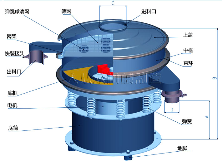 辣椒粉振動篩工作原理: